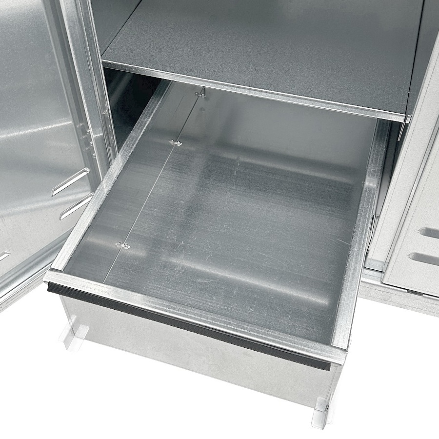 - Alle randen zijn dubbelgevouwen, waardoor de kast bijzonder stabiel is en zonder scherpe randen.